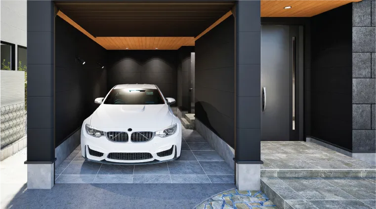 - 2電動シャッター付ビルトインガレージから直接住戸に入れるセカンドポーチ。