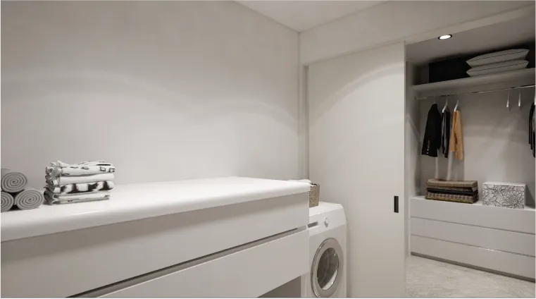 - 5ランドリールームから直接繋がるウォークスルーのファミリークロークは洗濯物をそのまましまえて便利です。