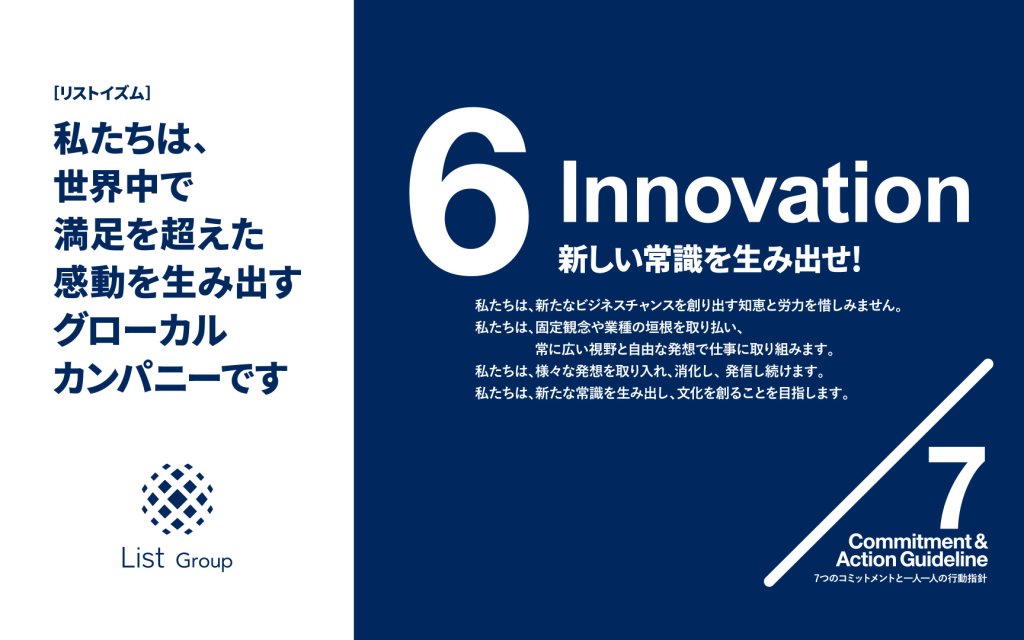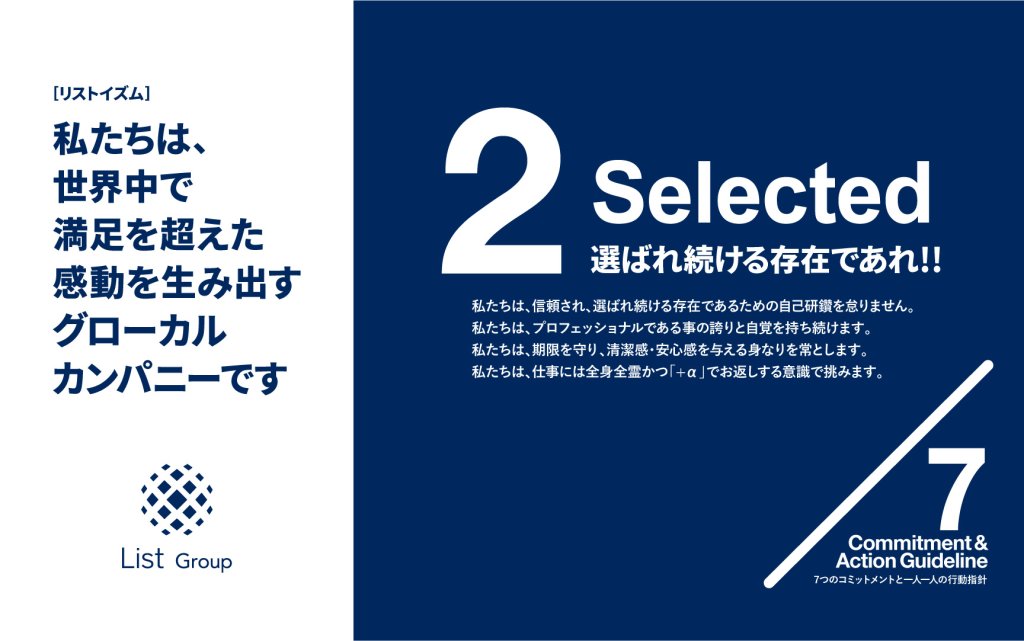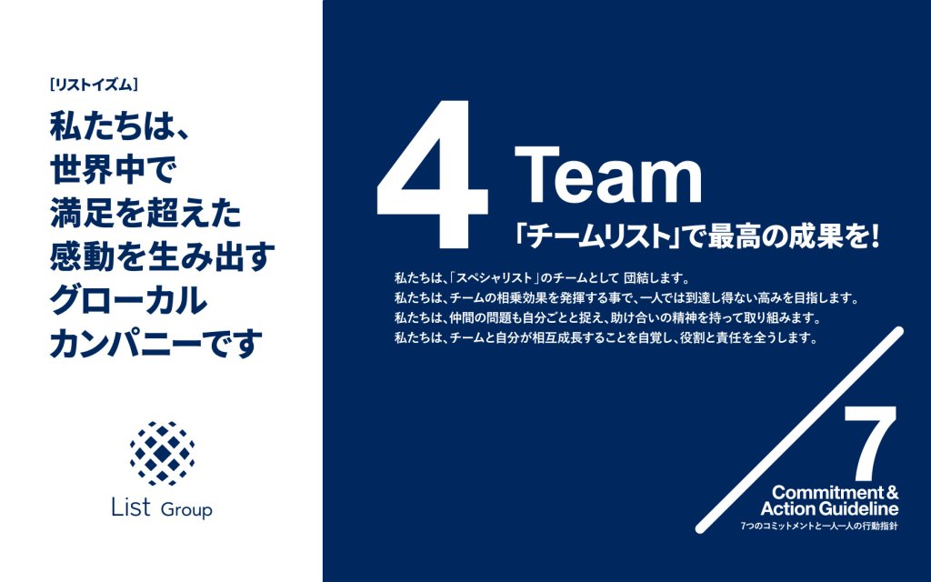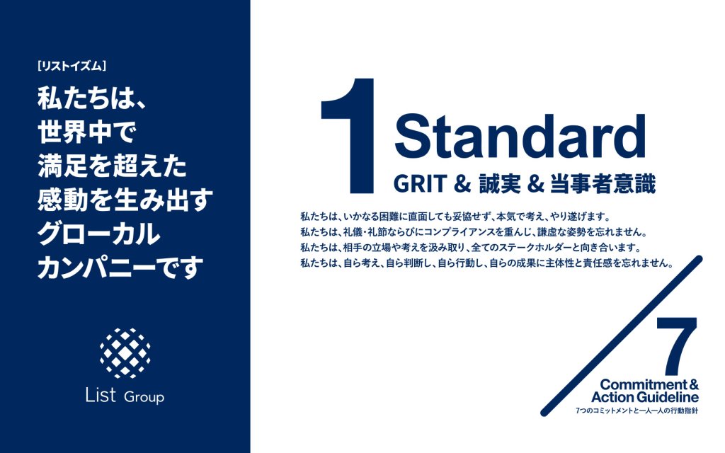 LISTISMには経営理念の他に、企業が果たすべき使命となる「ミッション」や、その実現のために一人ひとりが約束する7つの「コミットメント」が規定されています。