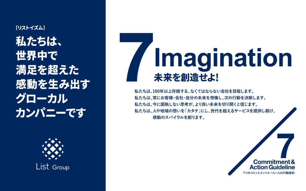 でも一番は『IMAGINATION』の「私たちは、人や地域の想いをカタチにし、世代を超えるサービスを提供し続け、感動のスパイラルを創ります」です。
