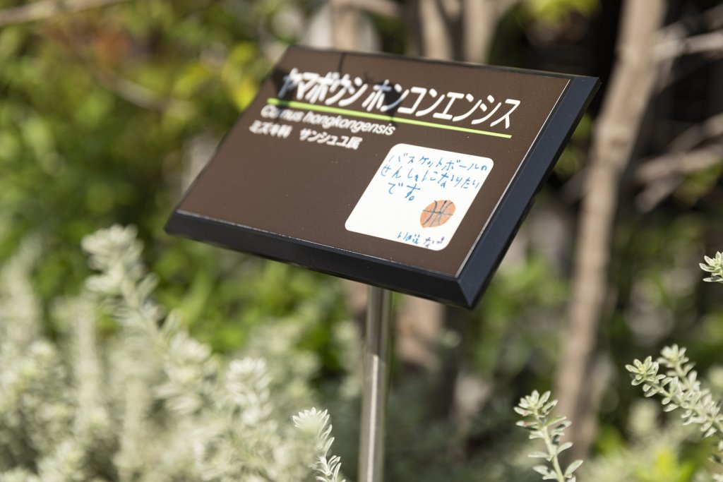 敷地内のシンボルツリーや自然林の高木などには、樹種を学べるように樹銘板を設置したんです。その板面に居住者の子どもたちの夢を記すことにしたんですよね。