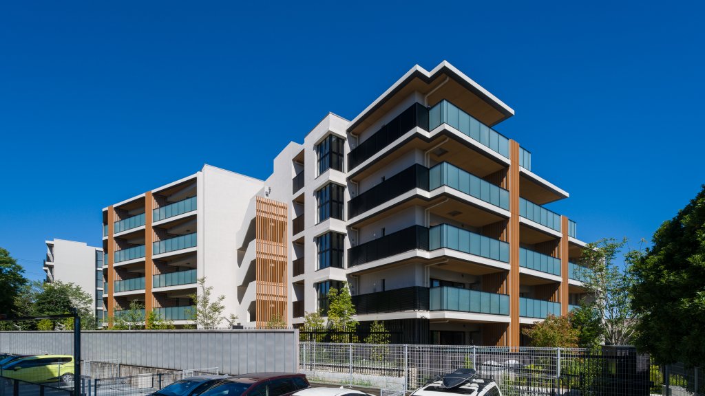 日本の近代化の過程で数多く建設されたニュータウンは、居住者の世代交代や建物の老朽化が大きな課題だが、一方で当時作られた緑地は、時間経過とともに厚みを増し、地域に豊かな環境を提供している。その価値に着目し、樹木群の維持管理や未来への継承を周到に計画されたこの集合住宅は、これからの時代が目指すべき開発の方向性を明確に提示してくれている。この緑地を最大限に享受できるよう作られた大きなバルコニーは、それだけでこの地に住まうことの喜びを支えてくれる心地よい空間だろう。