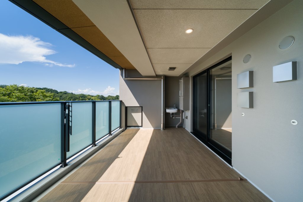 奥行き最大3.5mのワイドバルコニー。港北ニュータウンエリアならではの緑を最大限享受できるだけでなく、ガーデニングやブランチも楽しめる空間となっている。